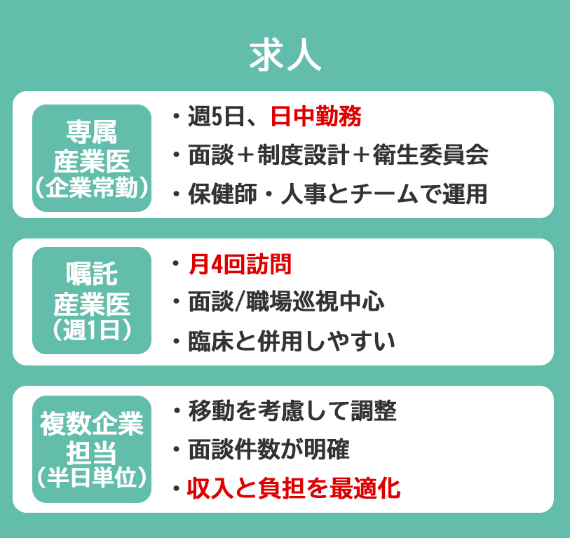 常勤で、専属産業医として安定勤務に切り替えたい先生へ