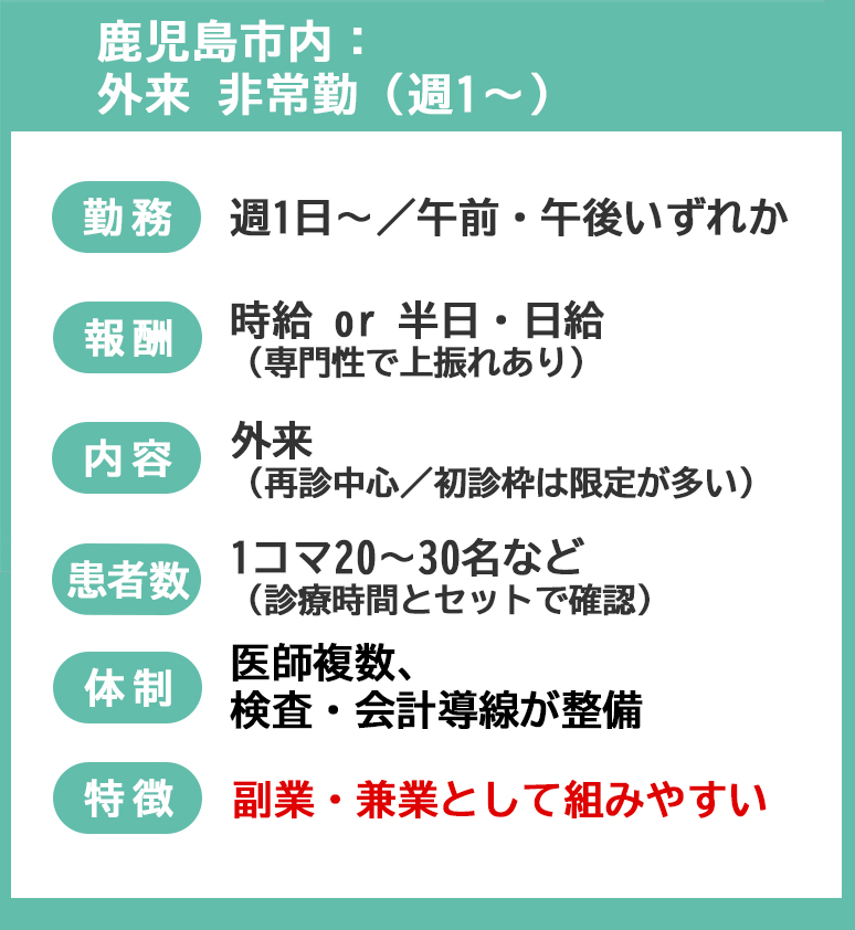 **医師 求人 鹿児島(非常勤)**を現実的な条件で確認する